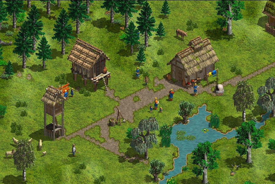 Viele wissen daß ich in letzter Zeit aus persönlichen Gründen leider wenig Zeit und Muse für die Germanen hatte. Aber Arbeit ist die beste Therapie und so geht es wieder weiter. Ich habe, nachdem so manche konstruktive Kritik kam, die Wiesenlandschaft überarbeitet und die störenden dunklen Ränder der Wege weggemacht. Was haltet Ihr davon? Die Texturen werden zu gegebener Zeit sowieso noch überarbeitet. Zudem bin ich auf den Vorschlag aus Kaffis Forum eingegangen und das Getreidelager eingebaut. Weiterhin könnt Ihr die Wassernuss, nach der ich auf meiner Hauptseite gefragt habe, im Dorfweiher sehen. Ein Klick auf das Bild (Ihr wißt es ja schon) zeigt Euch die Originalgröße. |