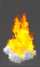Nun hat aber Feuer die Eigenart zum Teil transparent zu sein. Das Problem ist also, daß beim Freistellen des Bildes ein Rand (je nach Hintergrundfarbe) zu sehen ist. Der nächste Schritt ist also die Aufbereitung der Einzelbilder, so daß etwas vernünftiges herauskommt. Dann wird die Bildserie in das Programm (“Die Germanen“) eingepasst, ein wenig zusätzlicher Rauch oben hinzugefügt und dann sieht das so aus: