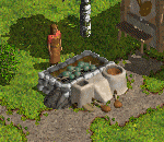 4. Spezielle Effekte Zu einem Computerspiel gehören natürlich auch spezielle Effekte. Ihr habt sie ja auf manchen Screens und Animationen schon gesehen: Rauch, Nebel oder Feuer. Ich erinnere da z.B. an den Röstofen. Diese Effekte sind in zwei Gruppen eingeteilt: die erste Gruppe wird als vorgerenderte Animation eingespielt, die zweite wird im Spiel selbst erzeugt. Zur ersten Gruppe zählt das Feuer, zur zweiten gehören Nebel und Rauch. Zuerst zur zweite Gruppe, denn die erste werde ich nachfolgend etwas näher beleuchten. Nebel und Rauch entstehen im Spiel mit Hilfe einer Graustufenanimation. Dabei werden, je nachdem ob es sich um weißen oder schwarzen Rauch handelt, die Bildpunkte abgedunkelt oder aufgehellt. Die Graustufenanimation bildet dafür die Vorlage. Die Farbe Weiß läßt zum Beispiel den Hintergrund unberührt, die Farbe Schwarz wirkt sich am stärksten auf den Hintergrund aus. Alles was dazwischen ist wird entsprechend verändert.